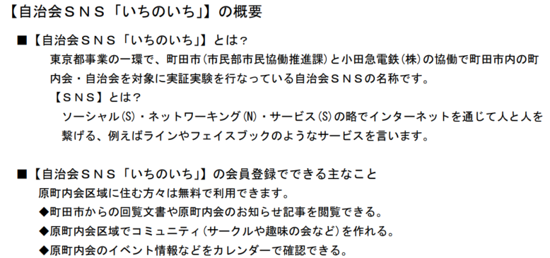 【自治会SNS「いちのいち」】の概要