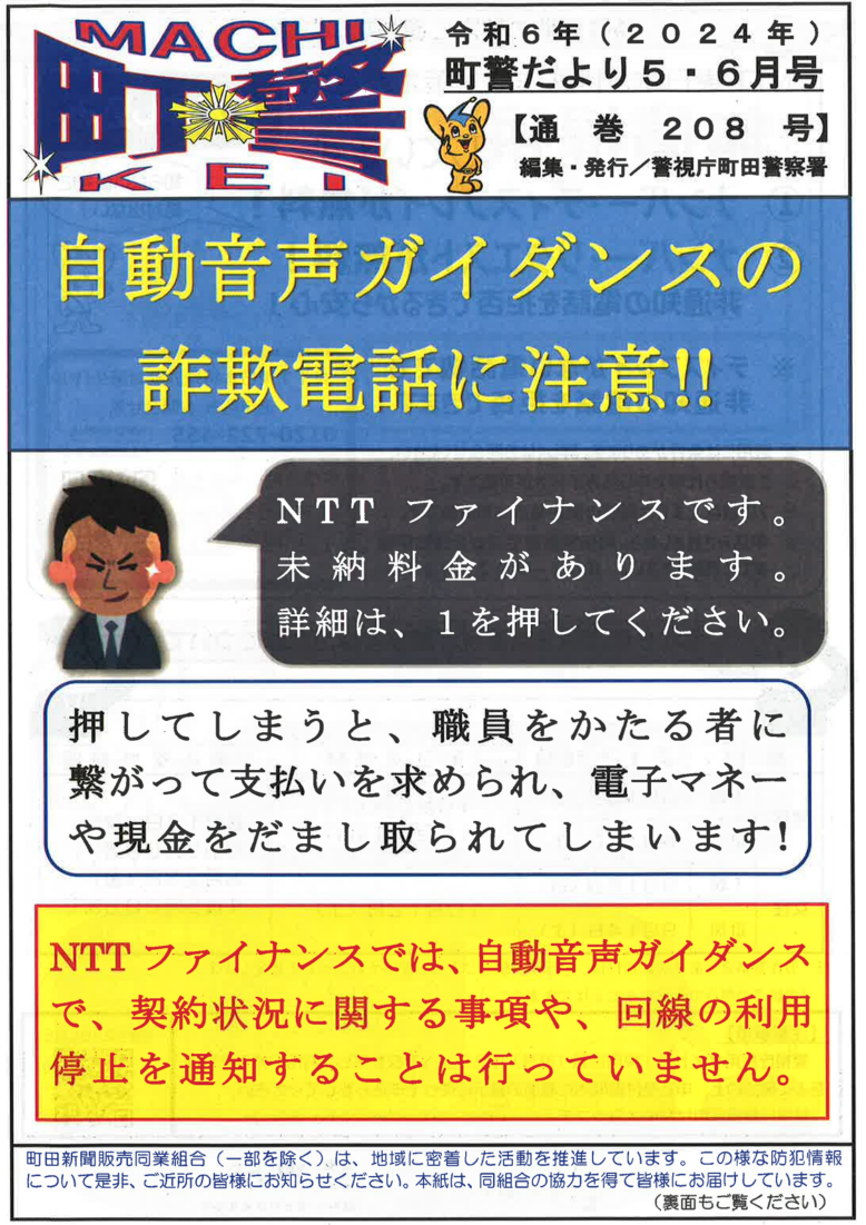 自動音声ガイダンスの詐欺電 に注意!
